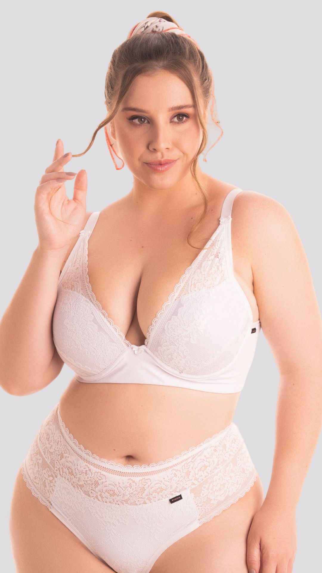 Confeccionado em renda antialérgica, macia e que não pinica.